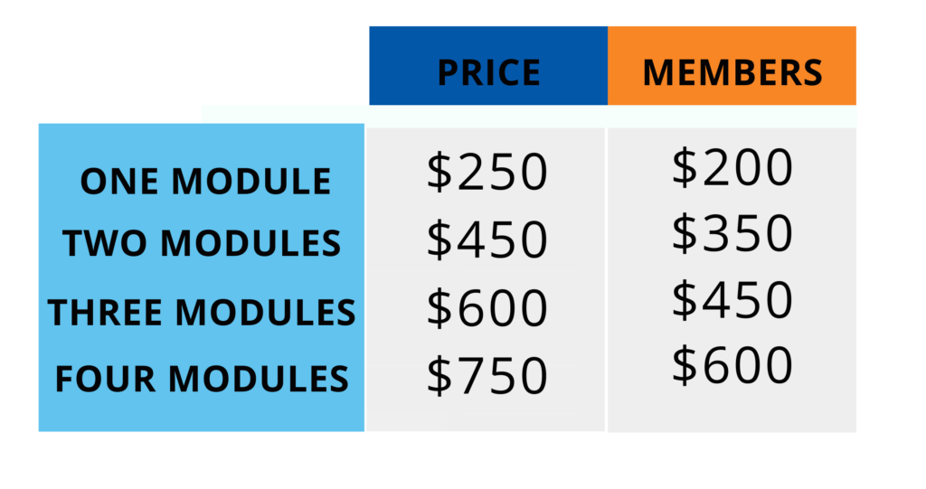 This seminar consists of four 2.5-hour modules presented over two days, beginning at 12:00 noon ET, running to 5:30 PM ET (the program includes a 30-minute break between modules).  Each module is split into three shorter sessions, with each session featuring a different presenter. Register for one, two, three, or all four modules – the choice is yours.