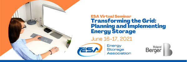 The U.S. Energy Storage Association (ESA) and seminar sponsor Roland Berger are hosting an in-depth virtual seminar on energy storage planning on June 16-17, 2021, Transforming the Grid:  Planning and Implementing Energy Storage. Registration has now closed.