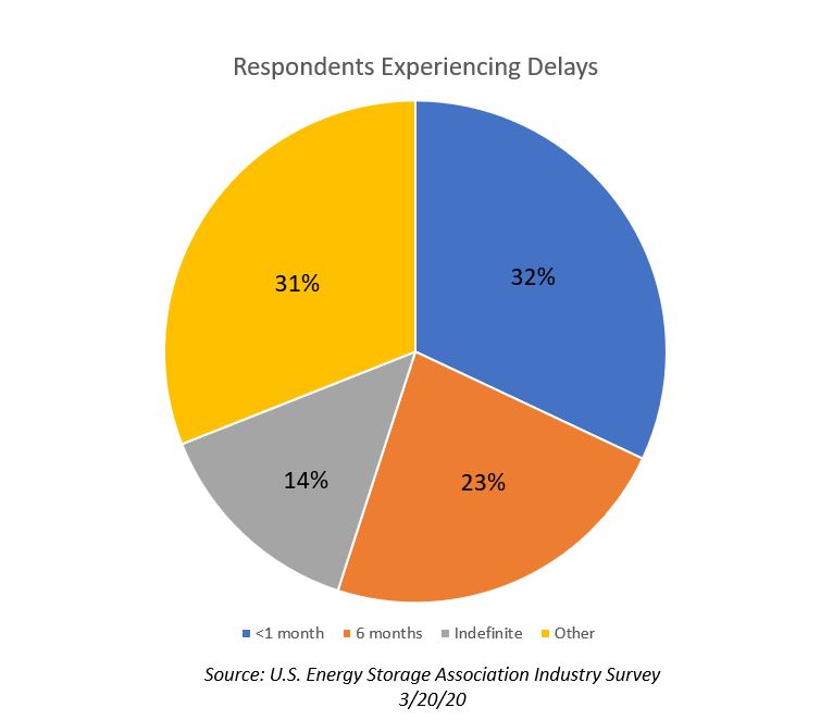In the power sector, storage projects are solicited and contracted with utilities or end users up to a year or more ahead of deployment. ESA surveyed stakeholder representatives across the industry, who conduct business critical to the energy economy and supply chains. The online survey of ESA members and the wider energy storage community was conducted in March 2020 and reflects a sample size of 173. The responses below reveal data and trends such as:
